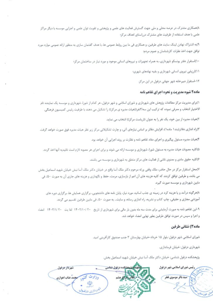 تفاهم نامه شهرداری و شورای اسلامی(2)