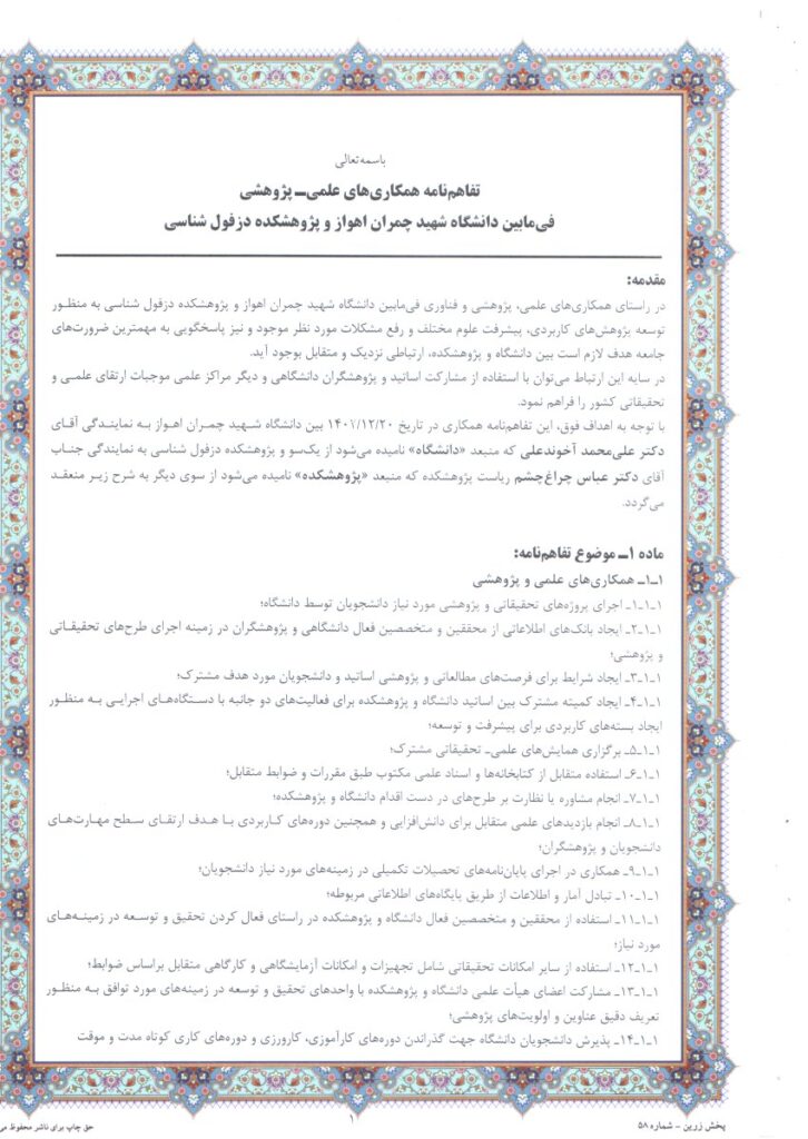 تفاهم نامه علمی-پژوهشی دانشگاه شهید چمران (1)