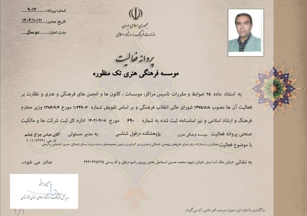 آدرس : دزفول،رو به روی ساختمان رادیو دزفول، خ دکتر ملک آسا نبش خ.شهید اسماعیلی بخش پلاک17 کد پستی6461635374